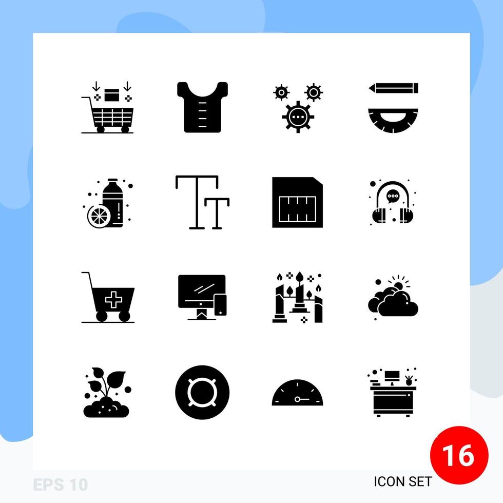 paquete de glifos sólidos de 16 símbolos universales de diseño de lápiz codificación brújula programación elementos de diseño vectorial editables vector