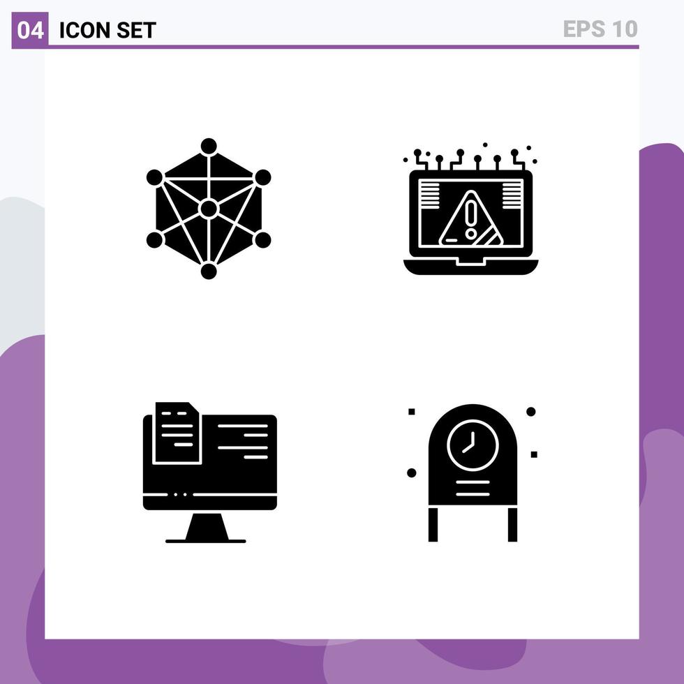 paquete de líneas vectoriales editables de 4 glifos sólidos simples de datos computadora máquina educación cibernética elementos de diseño vectorial editables vector