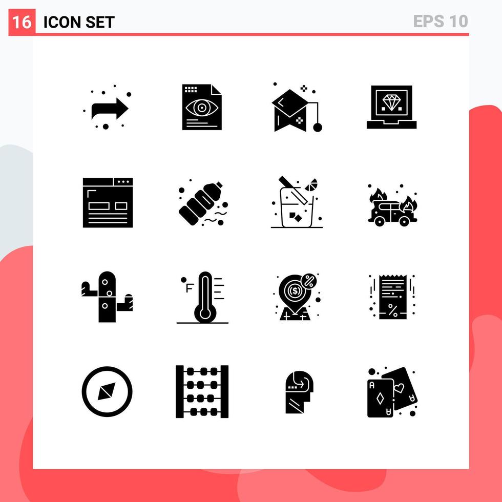 16 iconos creativos signos y símbolos modernos de programación de diseño desarrollo de copa de posgrado codificación elementos de diseño vectorial editables vector