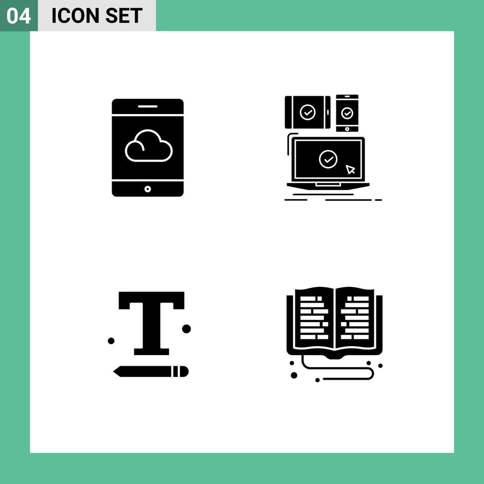 4 glifos sólidos vectoriales temáticos y símbolos editables de la interfaz de copia de seguridad configuración de texto adaptable a la computadora elementos de diseño vectorial editables vector