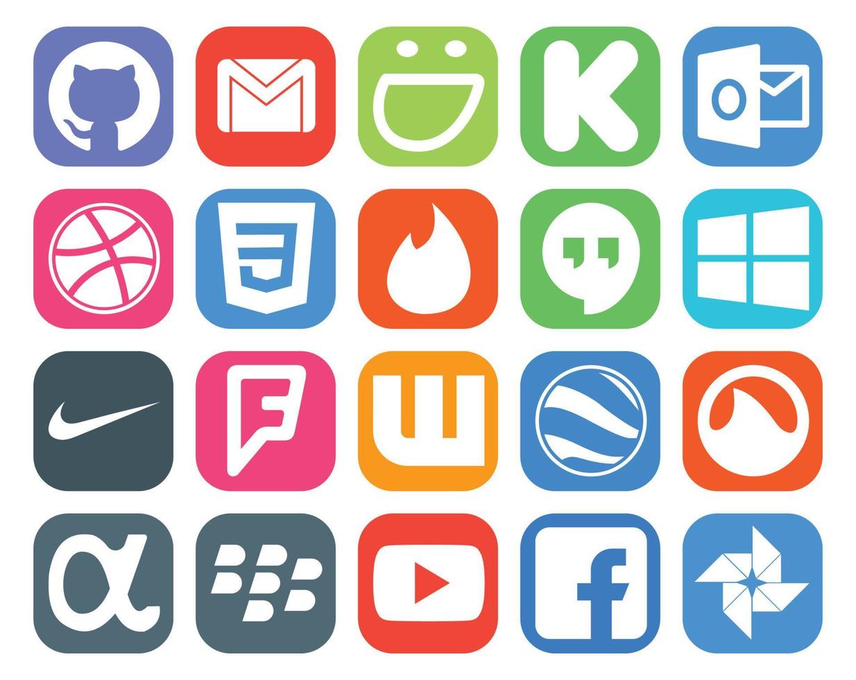 paquete de 20 íconos de redes sociales que incluye la aplicación net google earth css wattpad nike vector