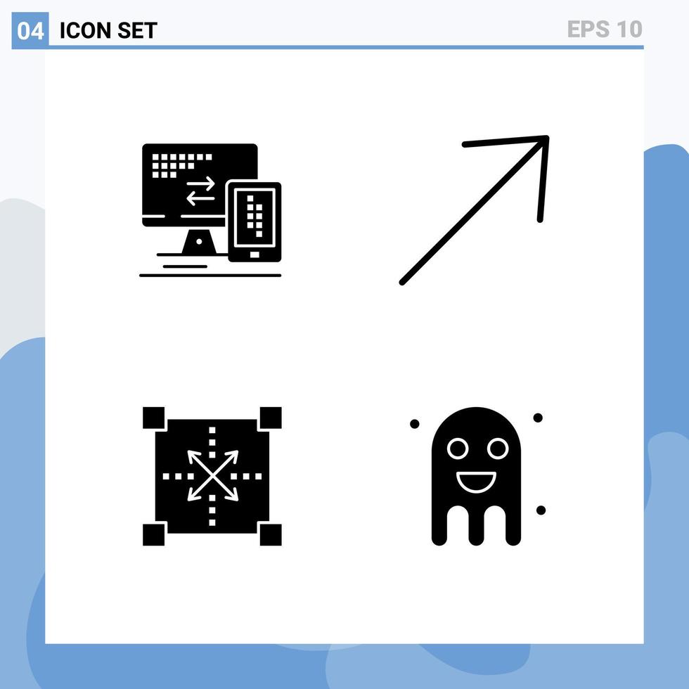 conjunto de 4 glifos sólidos vectoriales en cuadrícula para elementos de diseño vectorial editables en forma de celda de desarrollo informático vector