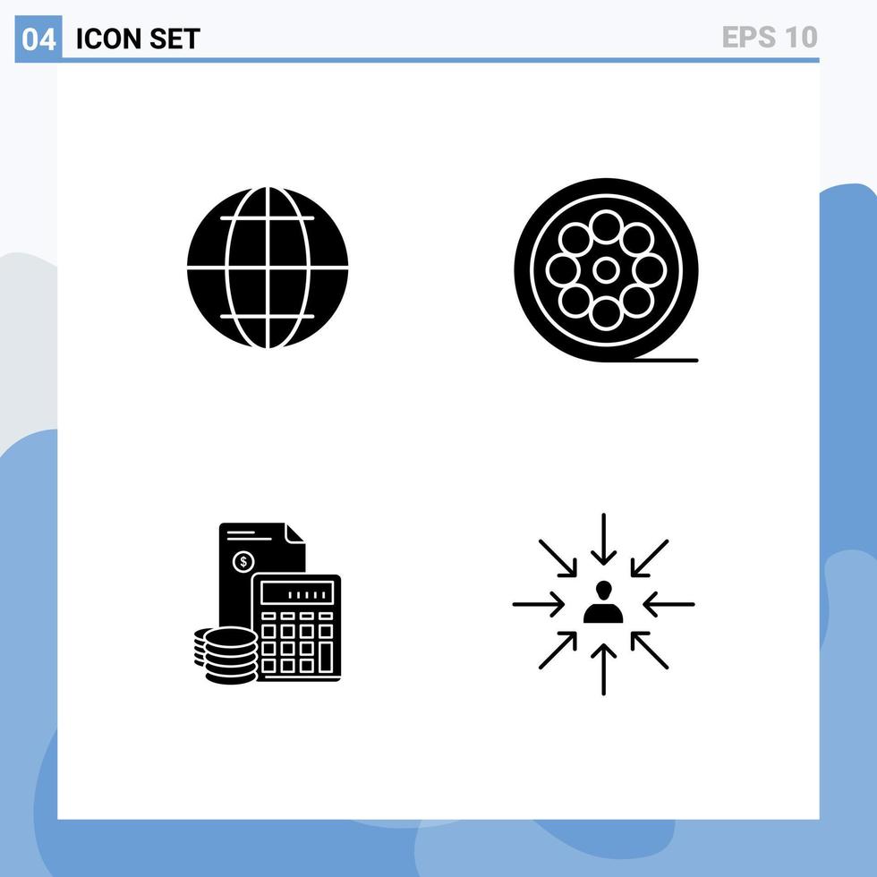 conjunto de pictogramas de 4 glifos sólidos simples de elementos de diseño vectorial editables de ahorro web de diseño empresarial global vector