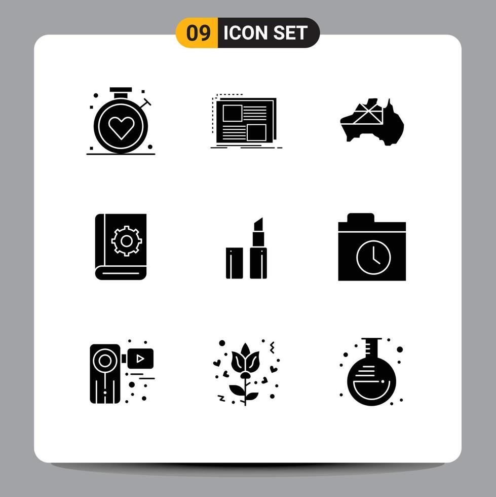 9 conjunto de glifos sólidos universales para el servicio de aplicaciones web y móviles ayuda a los elementos de diseño vectorial editables de la bandera de comunicación de texto vector