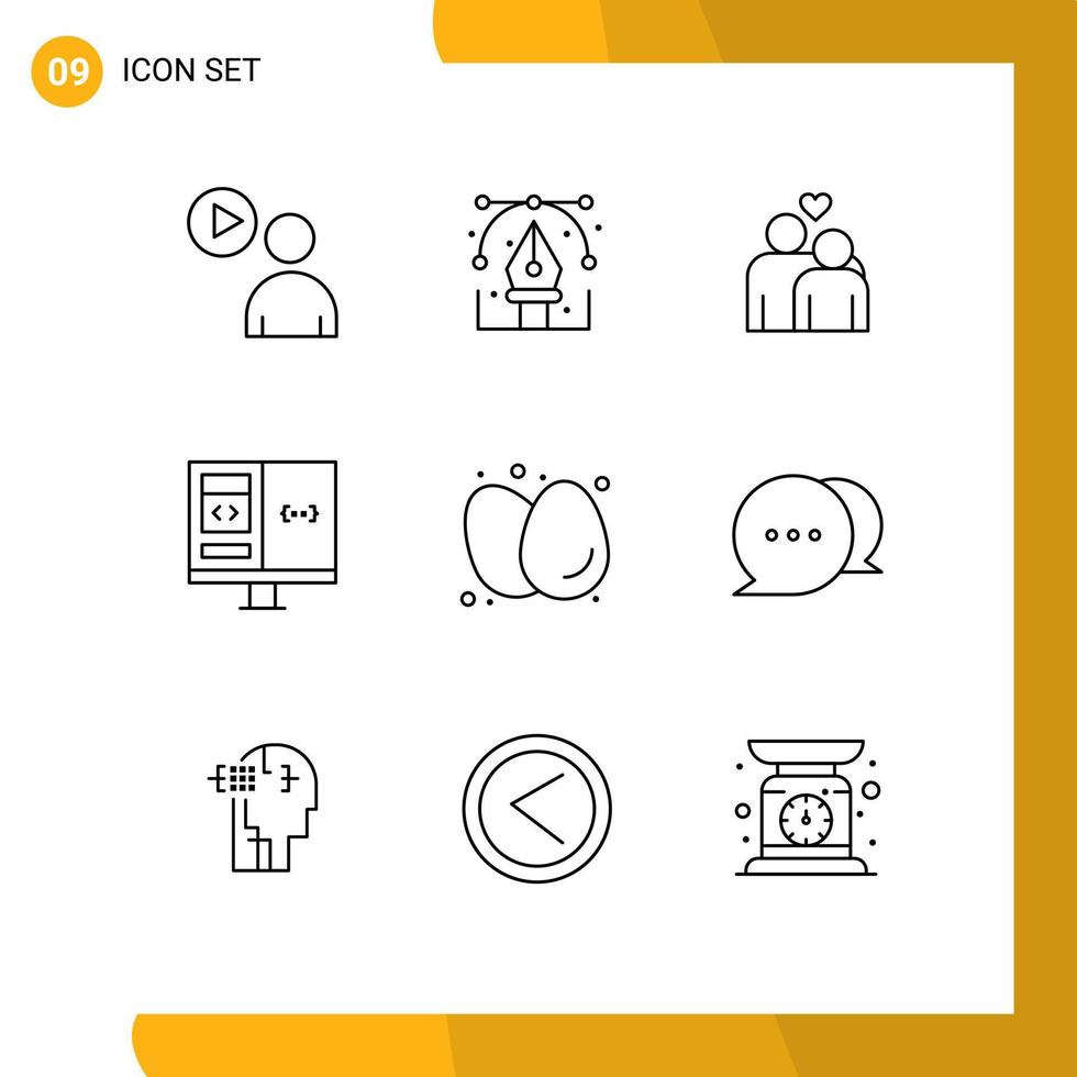 conjunto moderno de 9 esbozos pictograma de desarrollo computadora pluma codificación corazón elementos de diseño vectorial editables vector