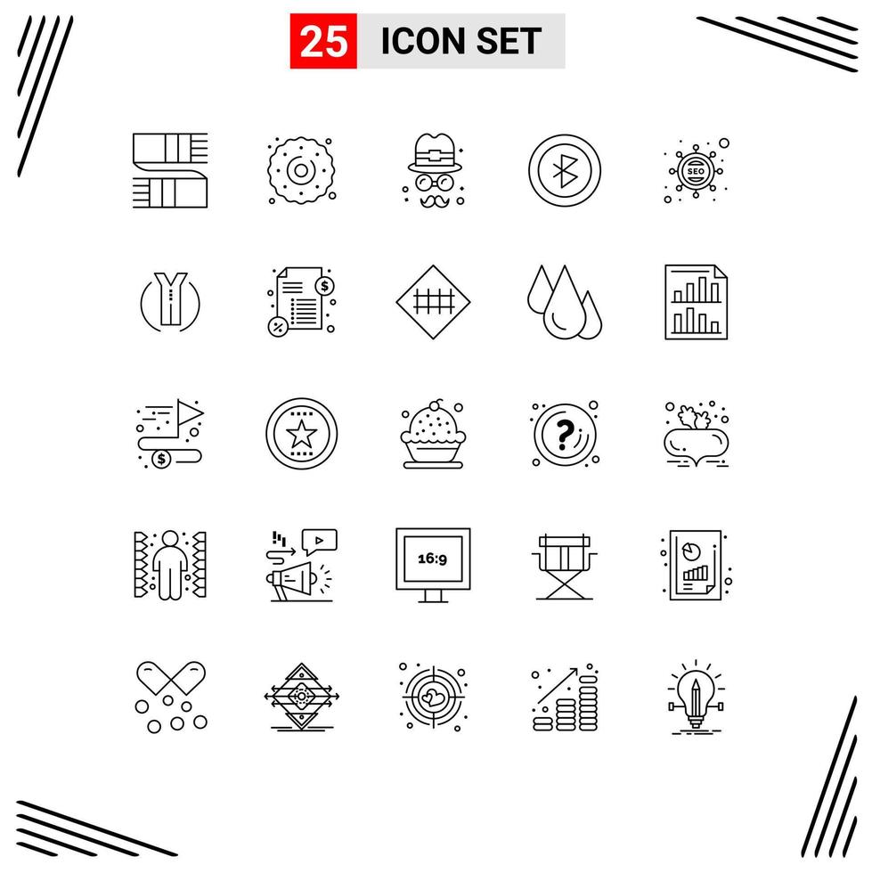 conjunto de pictogramas de 25 líneas simples de seo marketing avatar señal bluetooth elementos de diseño vectorial editables vector