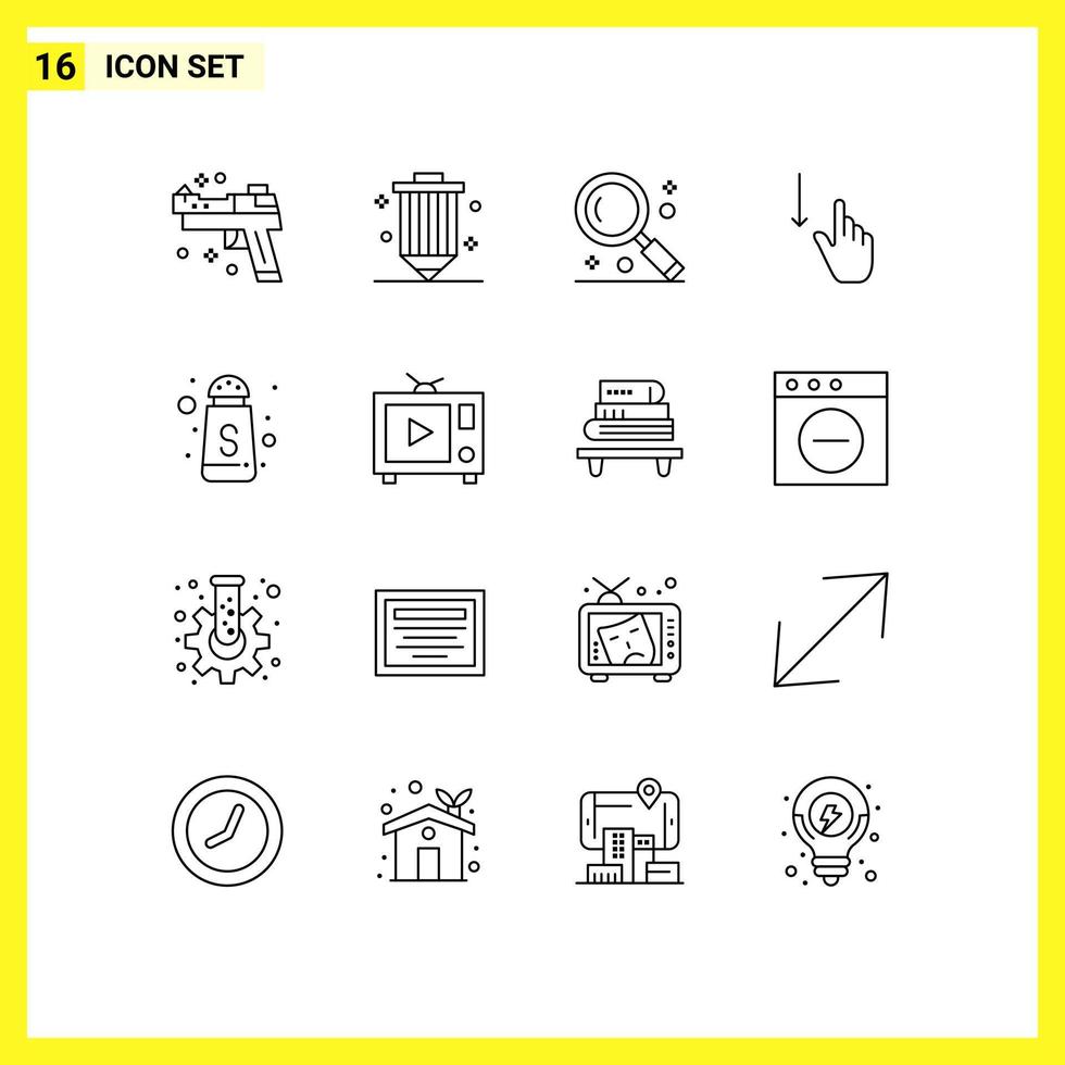16 contornos universales establecidos para aplicaciones web y móviles gestos programación con los dedos buscar elementos de diseño de vectores editables
