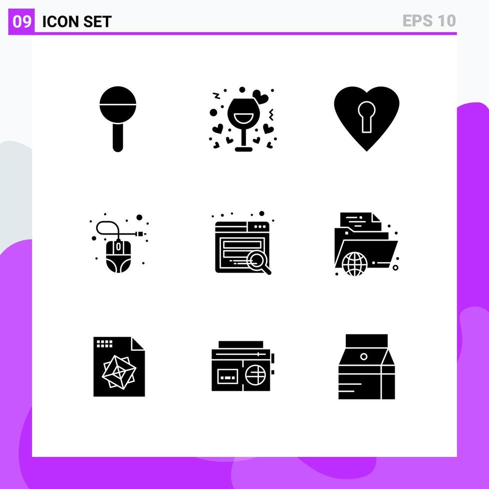 9 glifos sólidos vectoriales temáticos y símbolos editables de seo mouse hardware de vino elementos de diseño vectorial editables de computadora vector