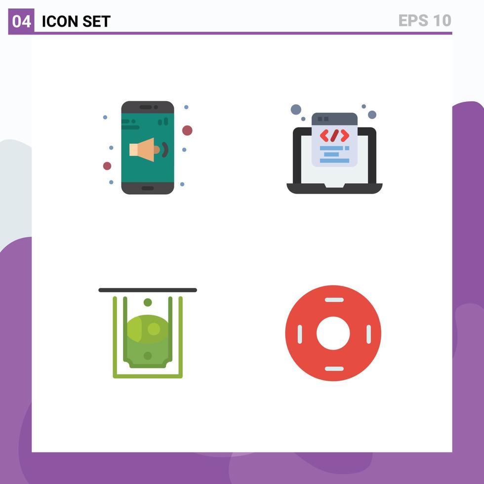 paquete de iconos vectoriales de stock de 4 signos y símbolos de línea para la aplicación atm volumen html codificación dinero elementos de diseño vectorial editables vector