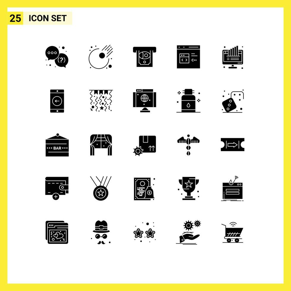 grupo de símbolos de icono universal de 25 glifos sólidos modernos de desarrollo de efectivo de gráfico de computadora codificación elementos de diseño vectorial editables vector