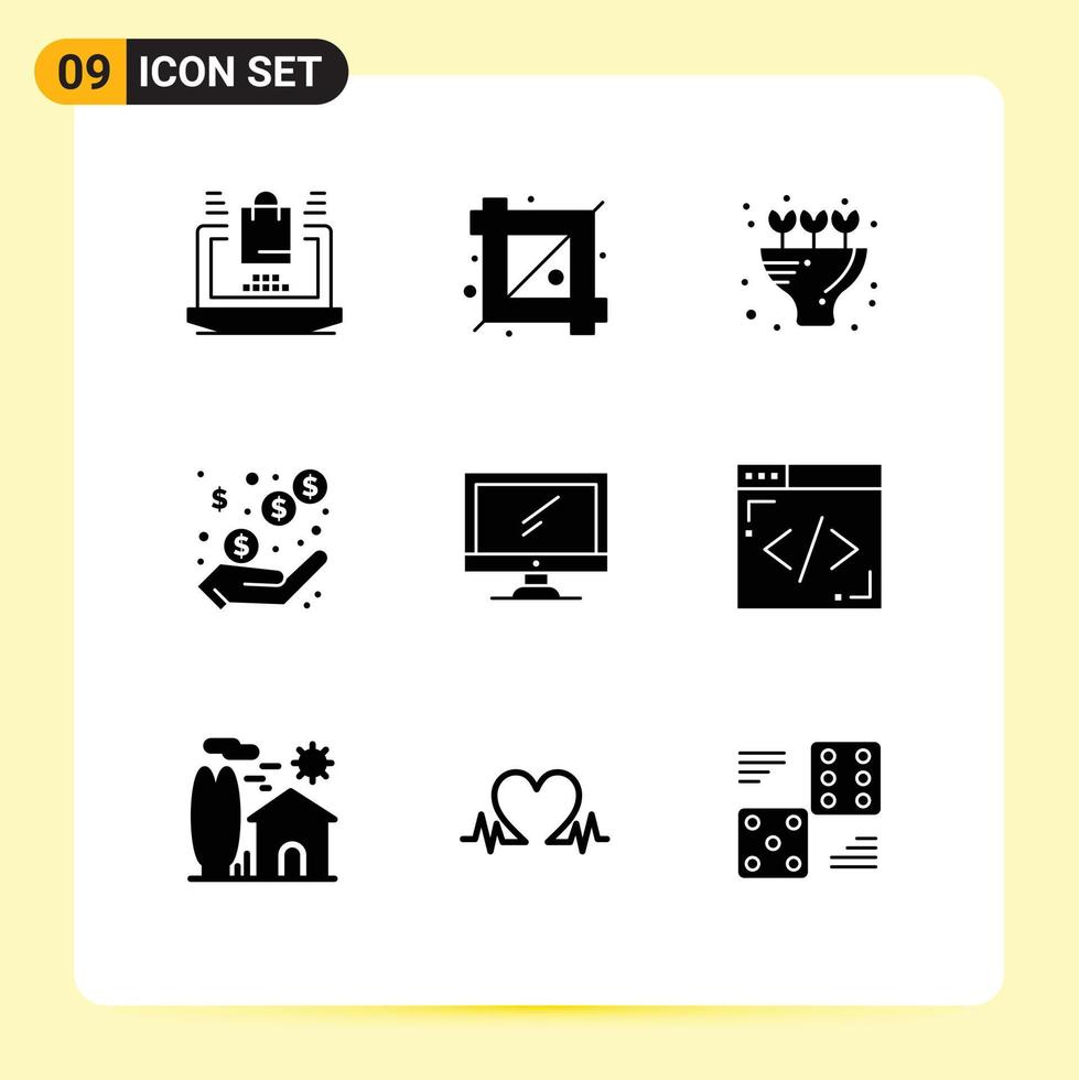 paquete de línea de vector editable de 9 glifos sólidos simples de dispositivo computadora ramo ganancias ganancia elementos de diseño de vector editable