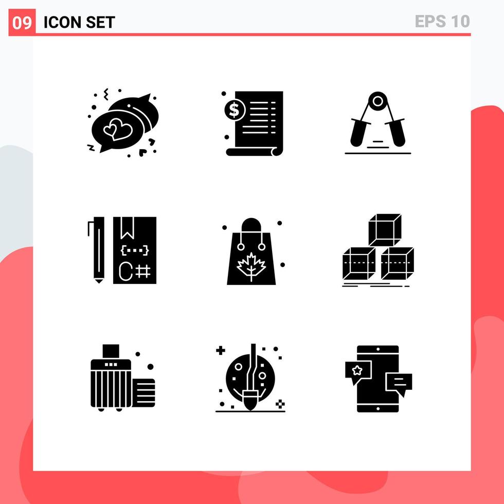 conjunto de pictogramas de 9 glifos sólidos simples de otoño desarrollar codificación manual c elementos de diseño vectorial editables vector