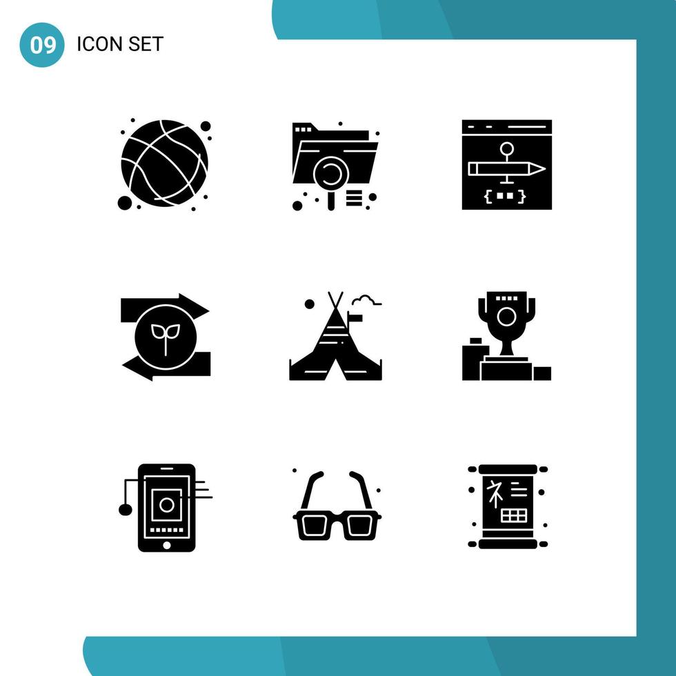 conjunto de 9 paquetes de glifos sólidos comerciales para desarrollo de extensión de flecha derecha codificación elementos de diseño vectorial editables vector