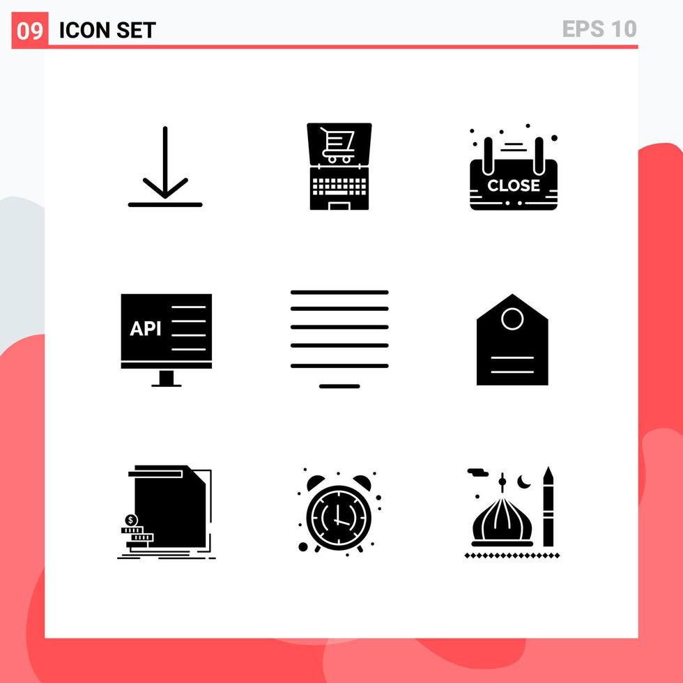 9 concepto de glifo sólido para sitios web móviles y aplicaciones alinear desarrollar elementos de diseño vectorial editables de aplicaciones de computadora de placa vector