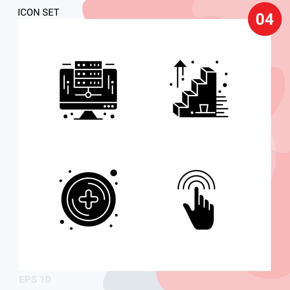 conjunto de pictogramas de 4 glifos sólidos simples de computadora más gestos de servidor elementos de diseño vectorial editables vector
