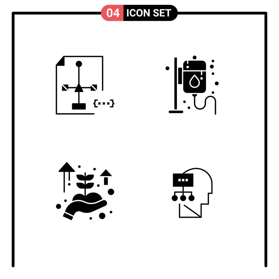 conjunto de pictogramas de 4 glifos sólidos simples de codificación documento de inicio de negocio salud elementos de diseño vectorial editables a mano vector