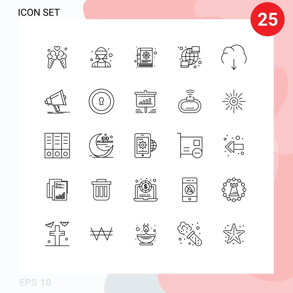 Concepto de 25 líneas para sitios web móviles y datos de aplicaciones simplifican la red de libros elementos de diseño de vectores editables globales Vector Gratis