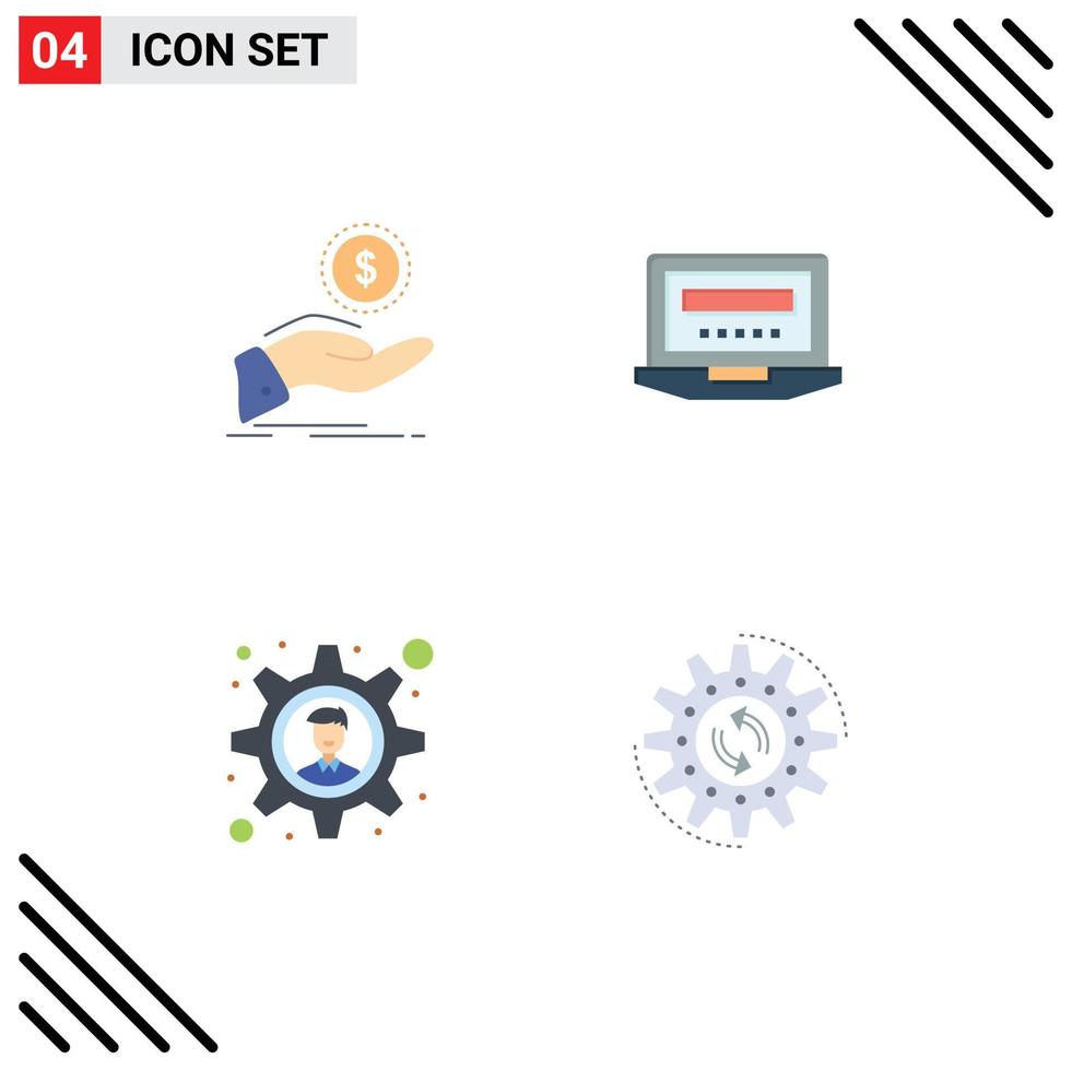 conjunto de pictogramas de 4 iconos planos simples de ayuda lluvia de ideas finanzas informática solución empresarial elementos de diseño vectorial editables vector