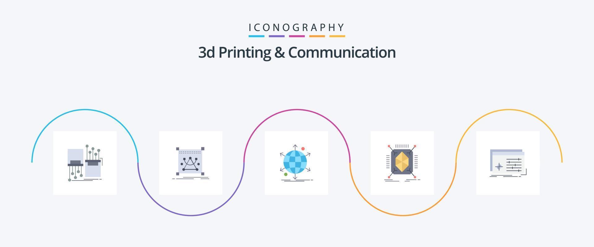 Paquete de 5 iconos planos de impresión y comunicación 3d que incluye rápido. objeto. objeto. web. neto vector