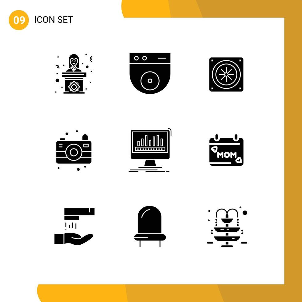 9 iconos creativos signos y símbolos modernos de procesamiento de datos análisis informático imagen elementos de diseño vectorial editables vector