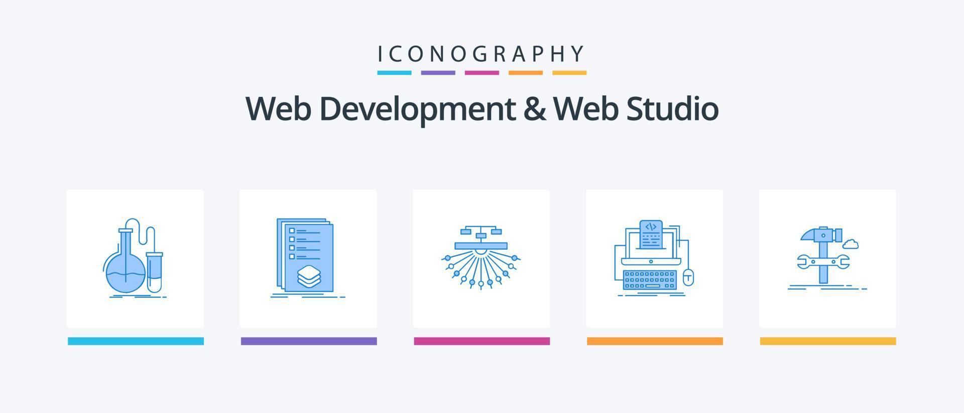 paquete de iconos azul 5 de desarrollo web y estudio web que incluye computadora. código. listado. web. sitio. diseño de iconos creativos vector