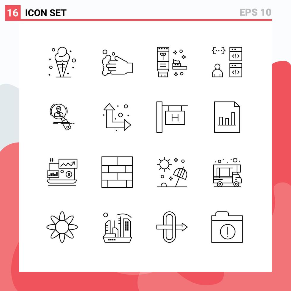 conjunto de esquema de interfaz móvil de 16 pictogramas de búsqueda desarrollar elementos de diseño de vector editables de aplicación de codificación ecológica