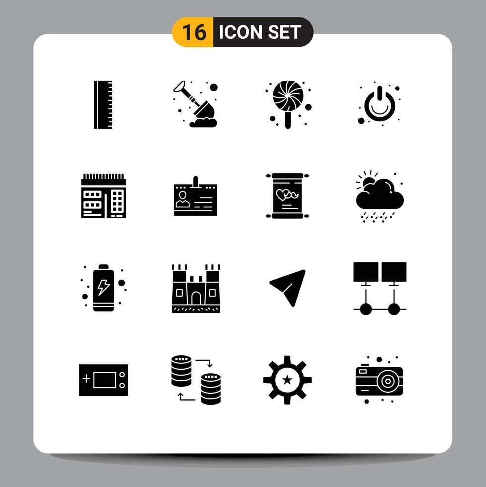 conjunto de pictogramas de 16 glifos sólidos simples de diseño web dulce interruptor en elementos de diseño vectorial editables vector