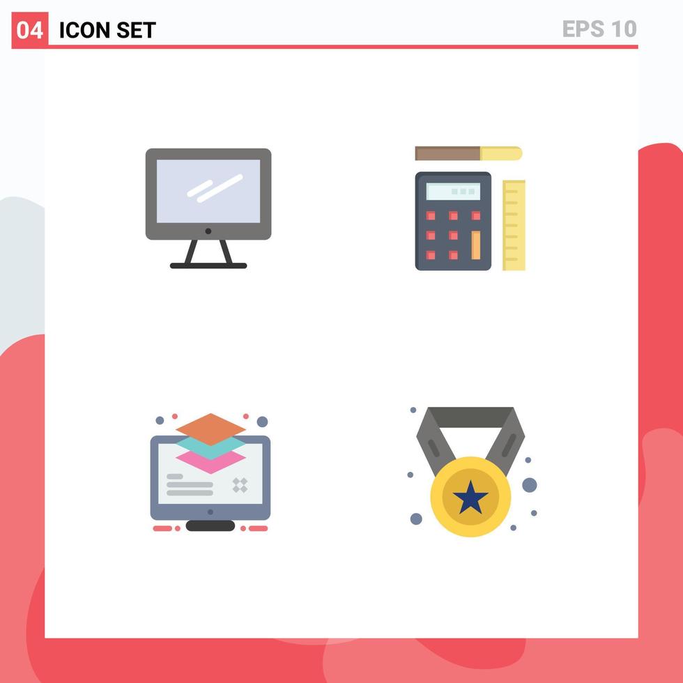 4 iconos planos universales establecidos para aplicaciones web y móviles computadora organizar capas de calculadora imac elementos de diseño vectorial editables vector