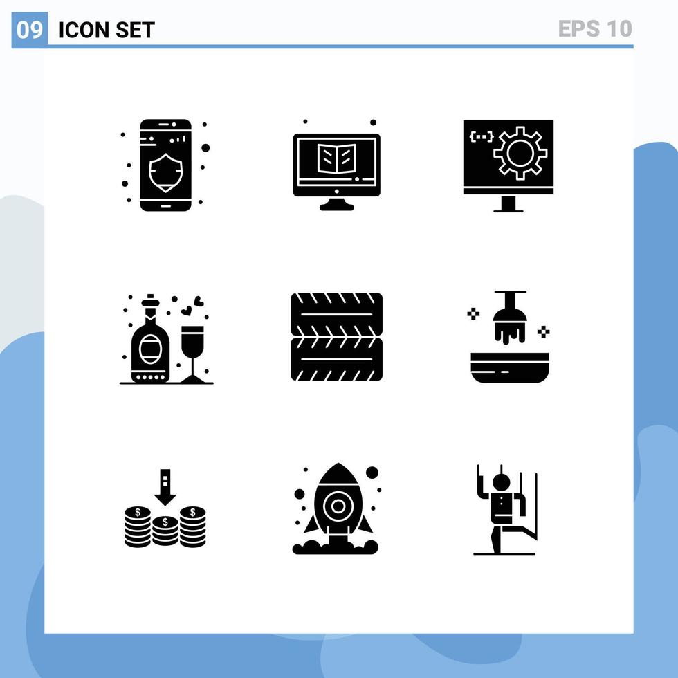 paquete de línea de vector editable de 9 glifos sólidos simples de programación de disco de codificación de fiesta de rueda elementos de diseño de vector editable