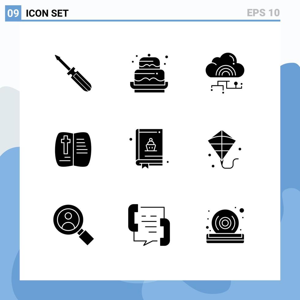 paquete de línea de vector editable de 9 glifos sólidos simples de elementos de diseño de vector editables de enlace de datos de decoración de libro de pascua