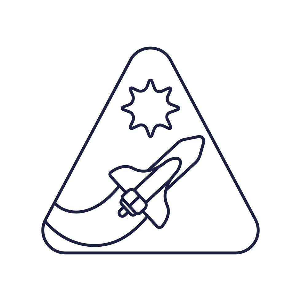 insignia triangular espacial con estilo de línea de vuelo de nave espacial vector