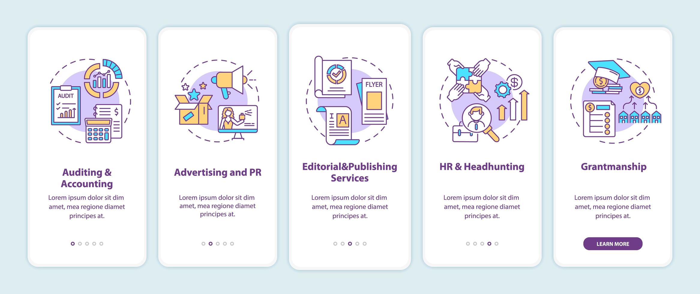 Los mejores servicios de consultoría empresarial incorporan la pantalla de la página de la aplicación móvil con conceptos Vector Pro