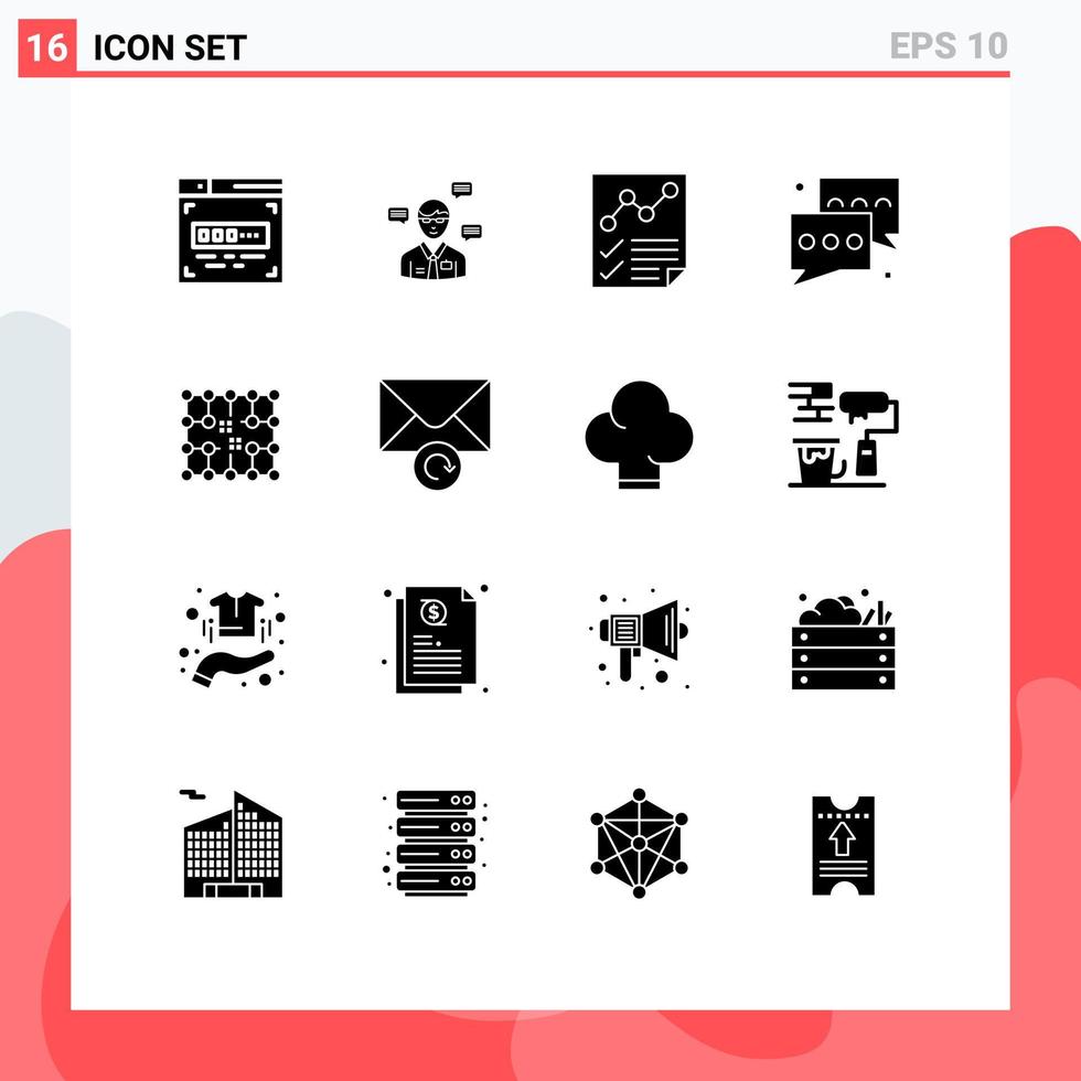16 glifos sólidos vectoriales temáticos y símbolos editables de elementos de diseño vectorial editables de informe de chat de análisis de comunicación de conversación vector