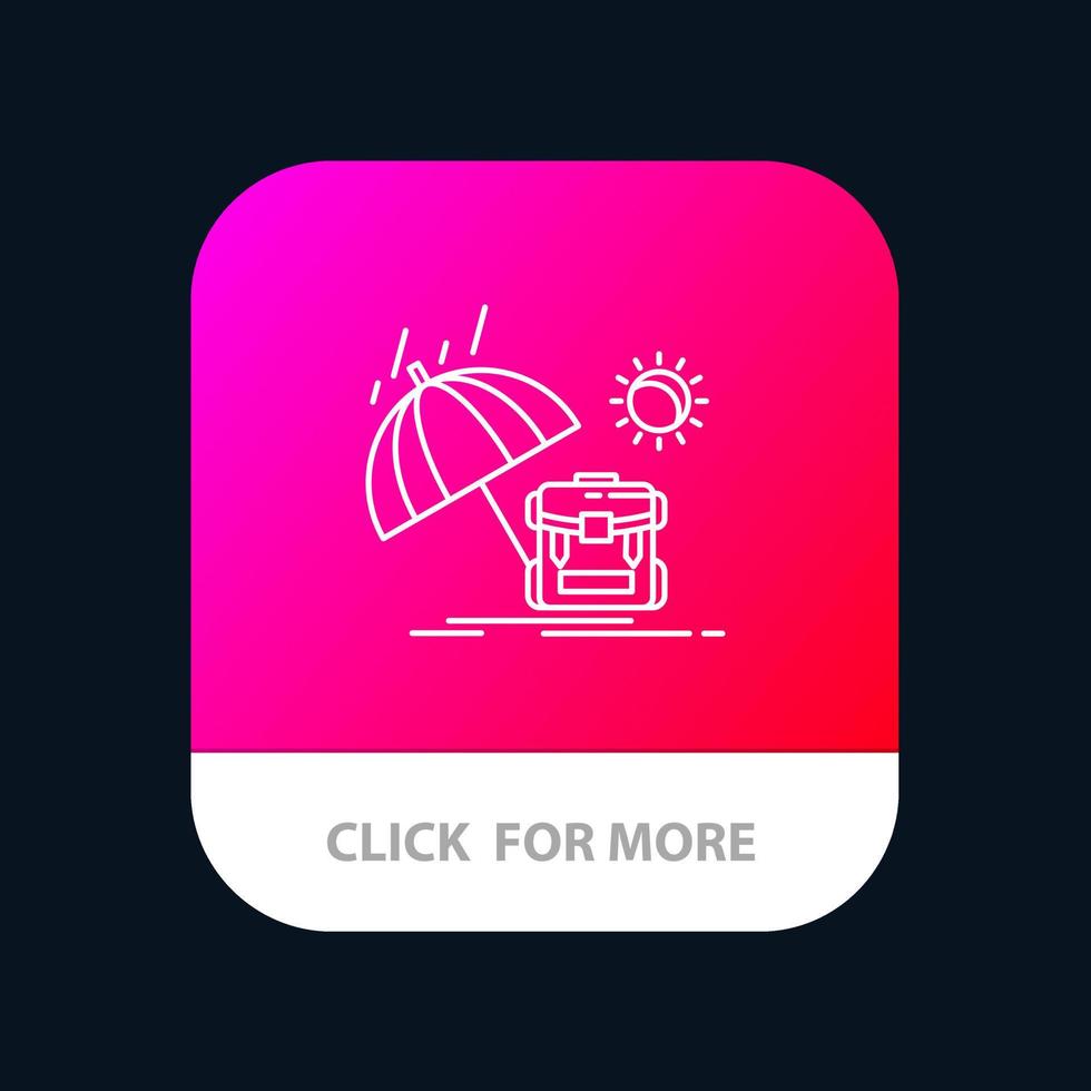 mochila de verano temporada de sol botón de la aplicación móvil versión de línea android e ios vector