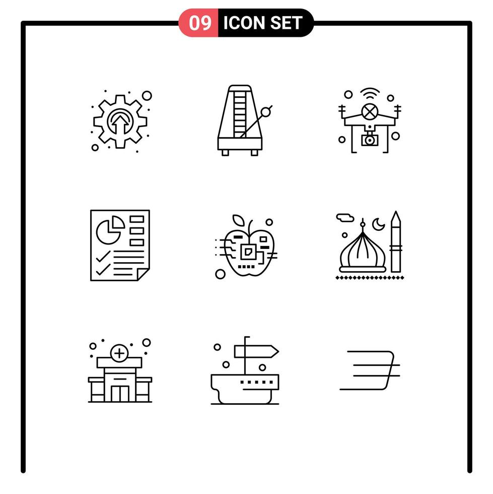 conjunto de pictogramas de 9 contornos simples del documento de informe datos de sonido cosas elementos de diseño vectorial editables vector