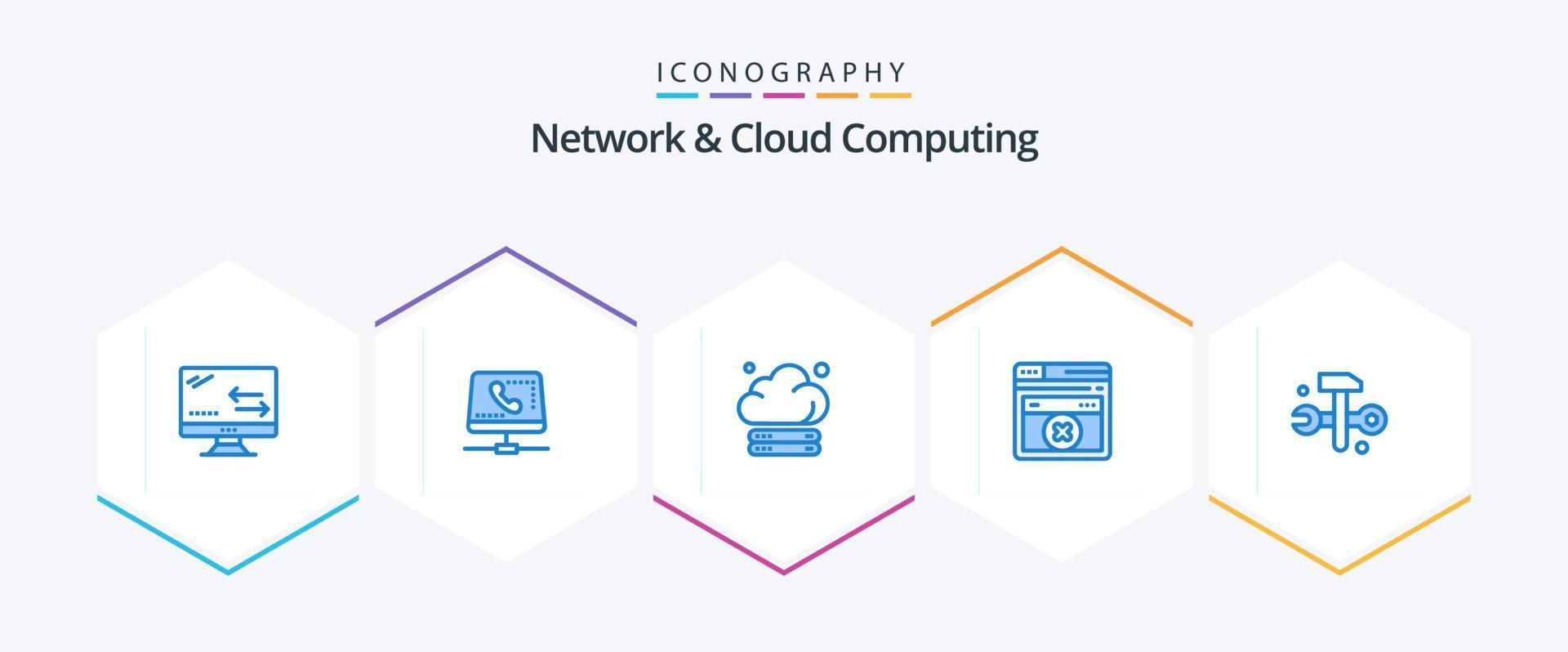 Paquete de 25 íconos azules de red y computación en la nube que incluye bases de datos. tecnología de error informática. web. tecnología vector