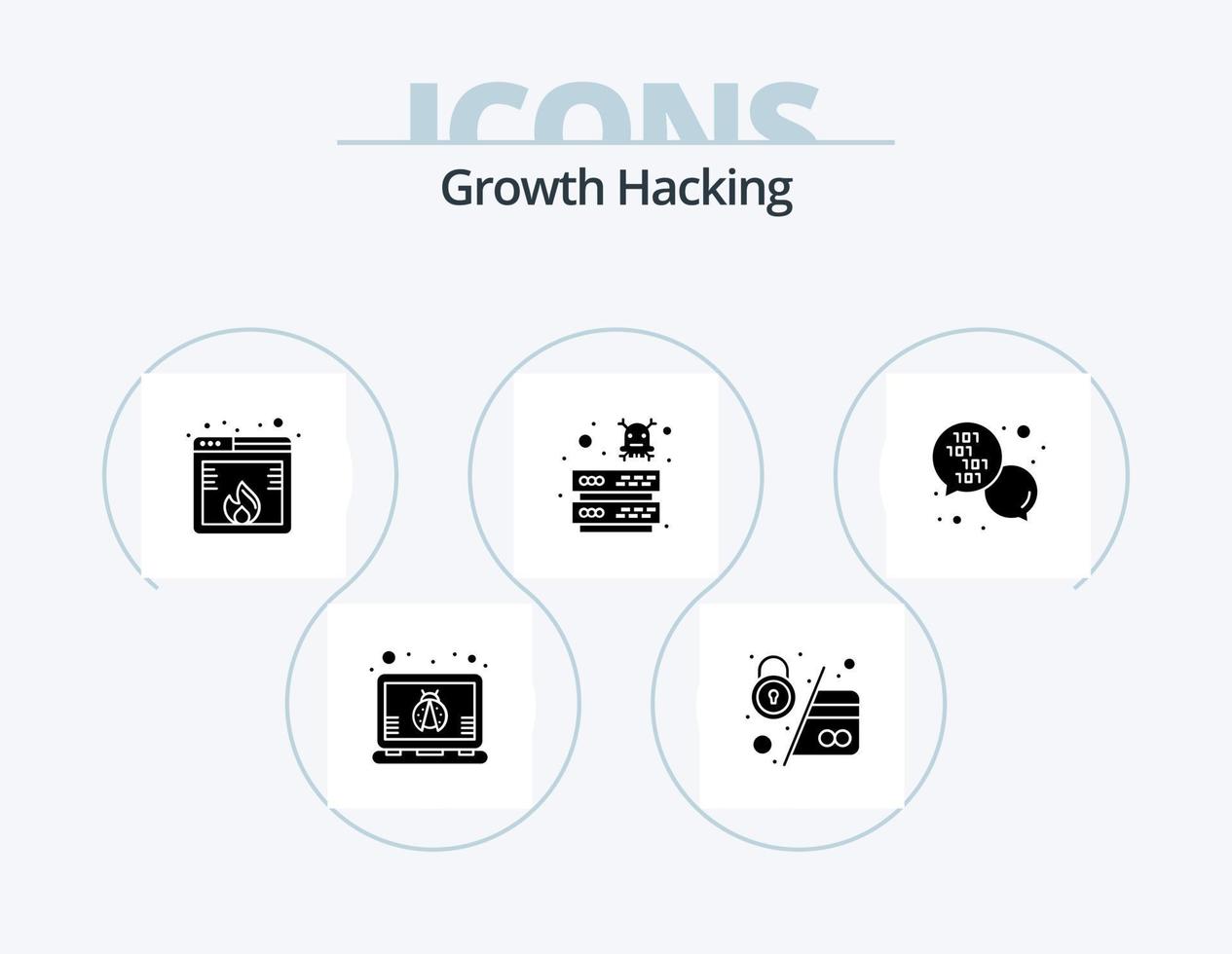 hacking glyph icon pack 5 diseño de iconos. virus. red. datos. base de datos. sitio web vector