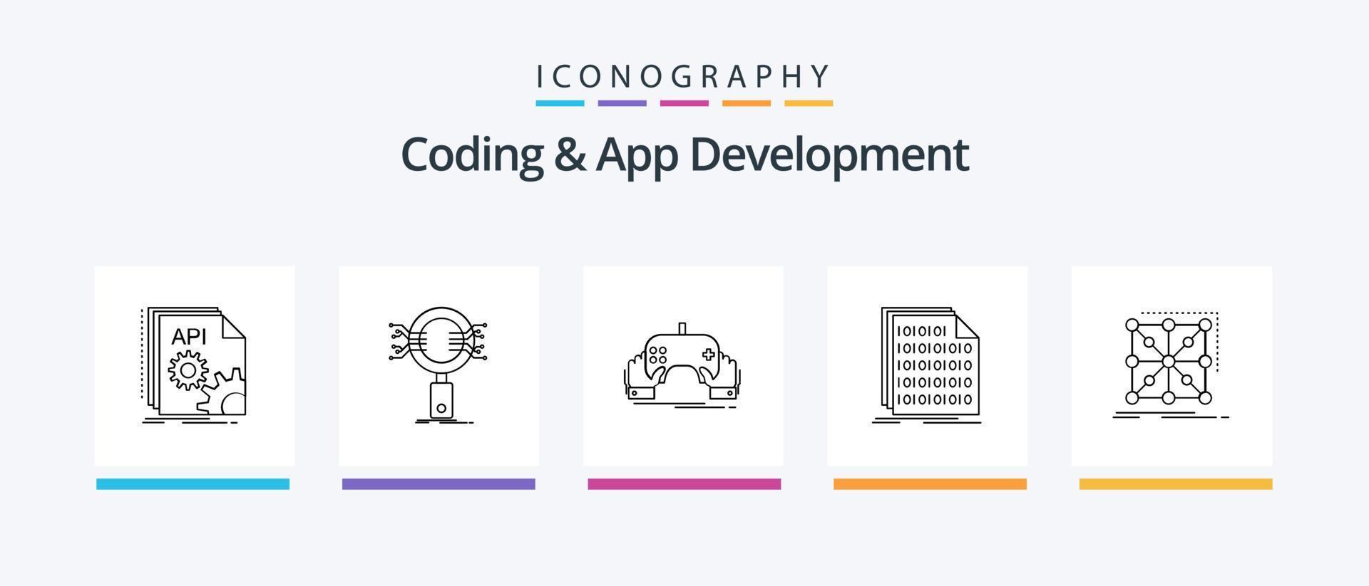 paquete de iconos de la línea 5 de codificación y desarrollo de aplicaciones que incluye información. análisis. desarrollo. red. conexión. diseño de iconos creativos vector