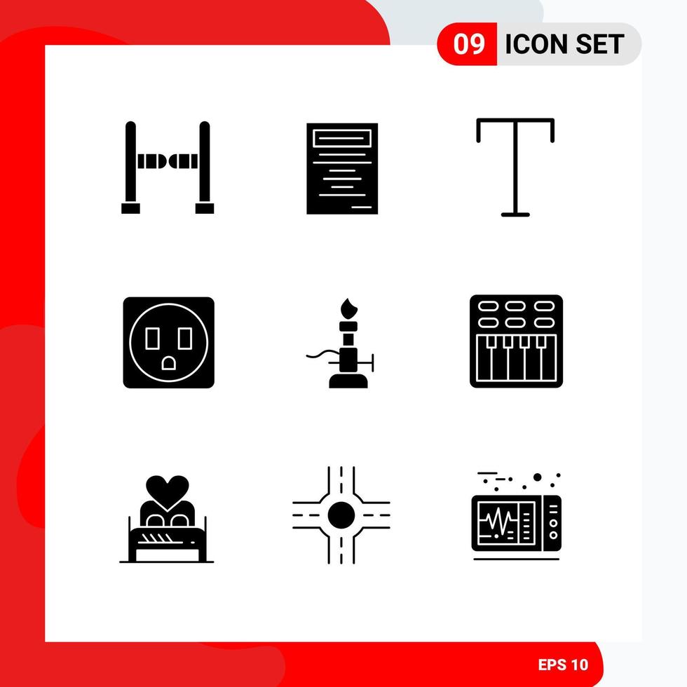 paquete de línea de vector editable de 9 glifos sólidos simples de elementos de diseño de vector editable de laboratorio de ciencia de estilo antorcha de película