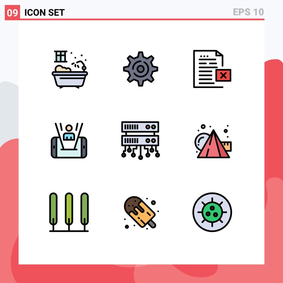 conjunto de 9 iconos de ui modernos signos de símbolos para elementos de diseño de vector editables de celda de tecnología de documento de servidor de base de datos web compartida