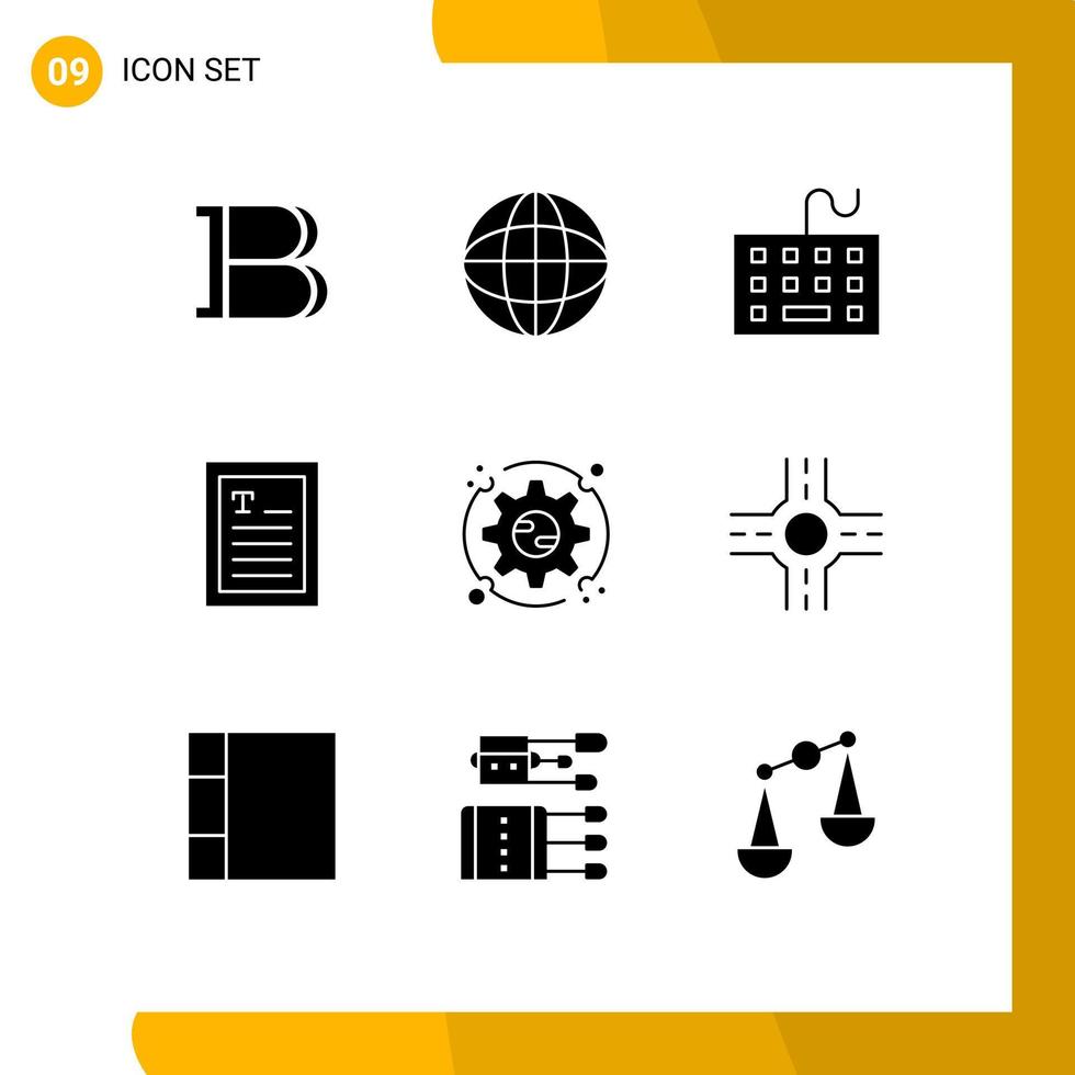 9 glifos sólidos vectoriales temáticos y símbolos editables de configuración de elementos de diseño vectorial editables del teclado de las manos de la computadora del lector vector
