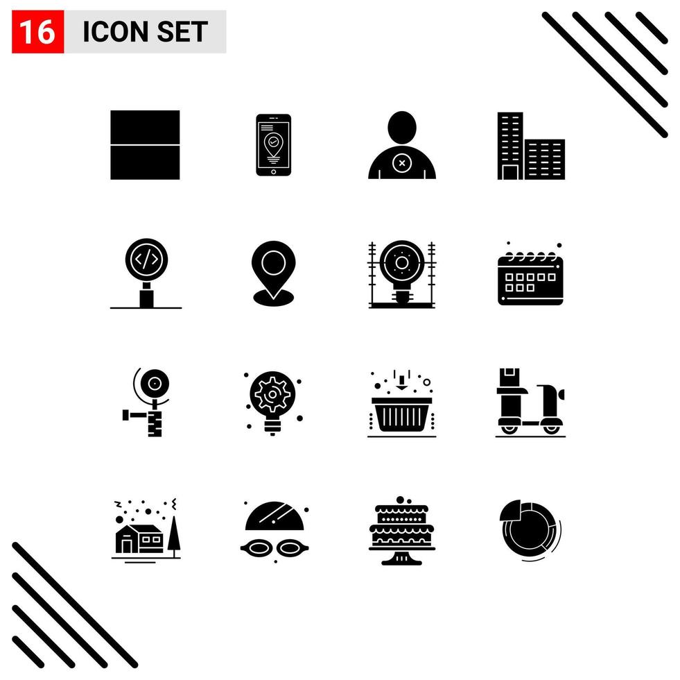 conjunto moderno de 16 pictogramas de glifos sólidos de programación de ubicación código de desarrollo de usuario elementos de diseño vectorial editables vector
