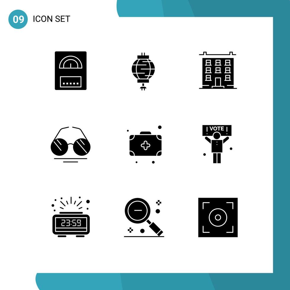 Conjunto de 9 glifos sólidos universales para aplicaciones web y móviles elementos de diseño vectorial editables vector