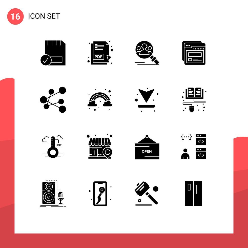 paquete de línea de vector editable de 16 glifos sólidos simples de enlace ayudan a encontrar elementos de diseño de vector editables de página web