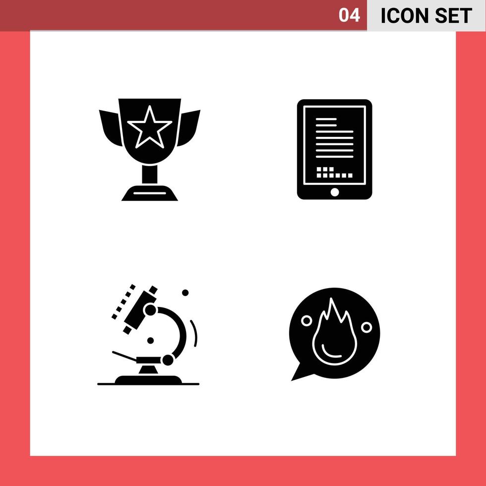 conjunto de pictogramas de 4 glifos sólidos simples de logro biología premio codificación microscopio elementos de diseño vectorial editables Vector Gratis