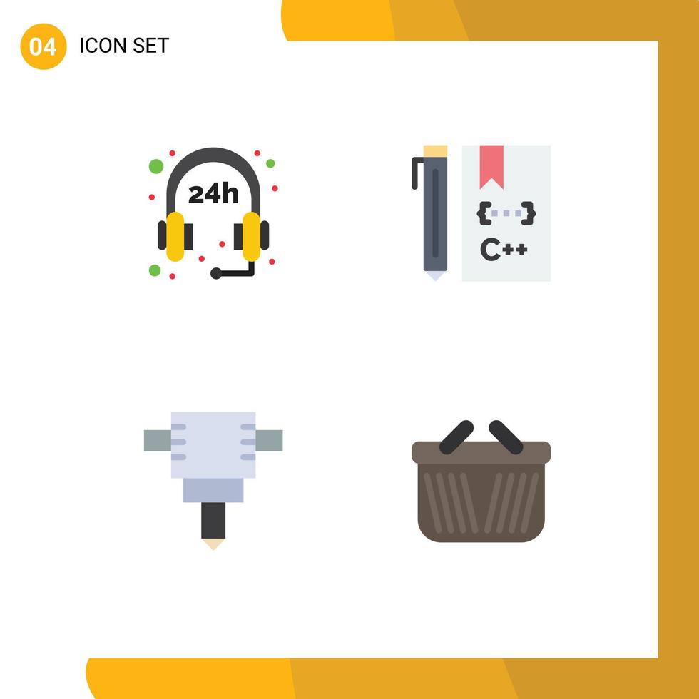 paquete de interfaz de usuario de 4 iconos planos básicos de cesta de horas c desarrollar elementos de diseño vectorial editables de comercio electrónico Vector Gratis