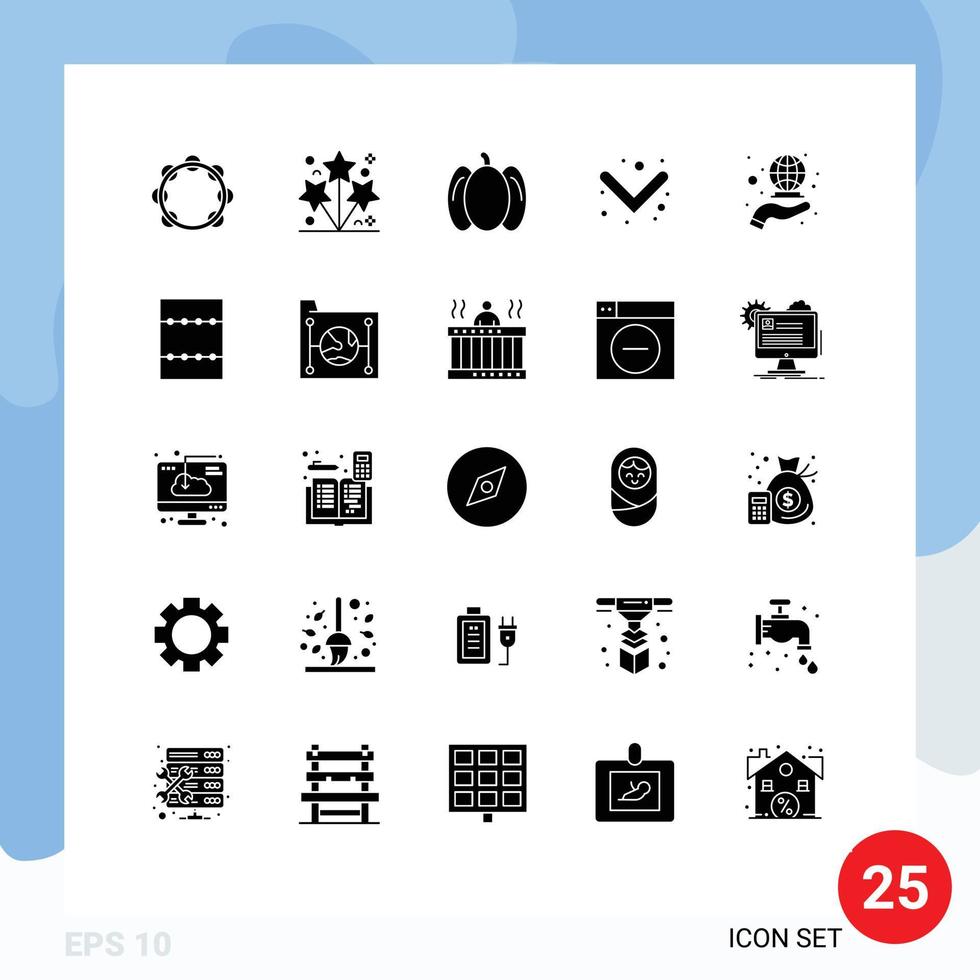 conjunto de pictogramas de 25 glifos sólidos simples de cobertura internacional chispa elementos de diseño vectorial editables de flecha completa vector