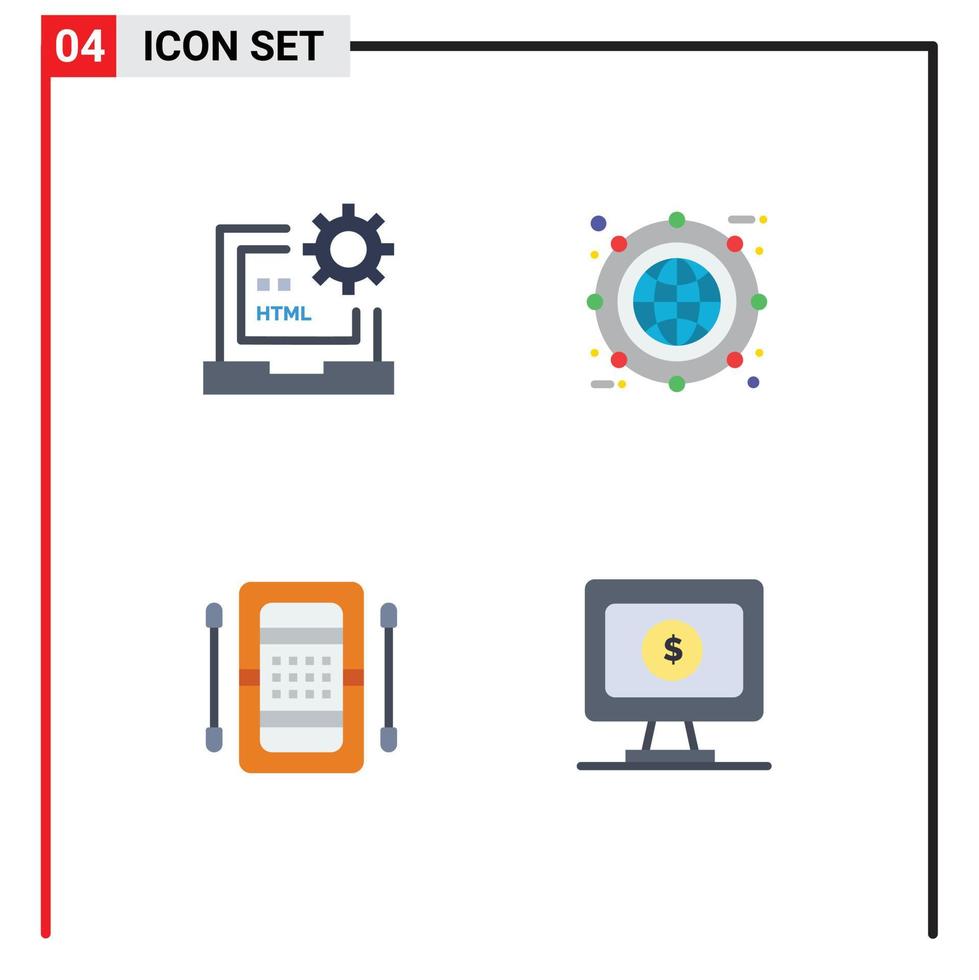 paquete de línea vectorial editable de 4 iconos planos simples de archivo de desarrollo de línea de código atletismo elementos de diseño vectorial editables vector