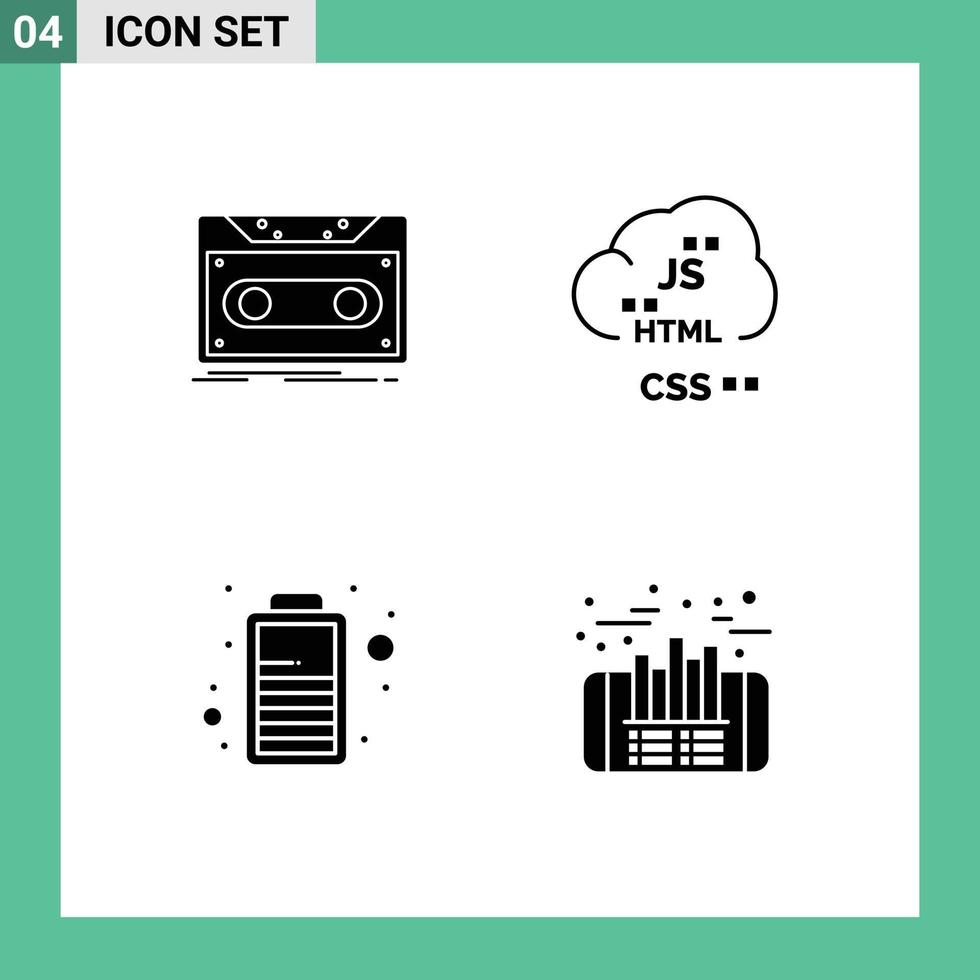 4 conjunto de glifos sólidos universales para aplicaciones web y móviles código de cinta de desarrollo de casete carga elementos de diseño vectorial editables vector