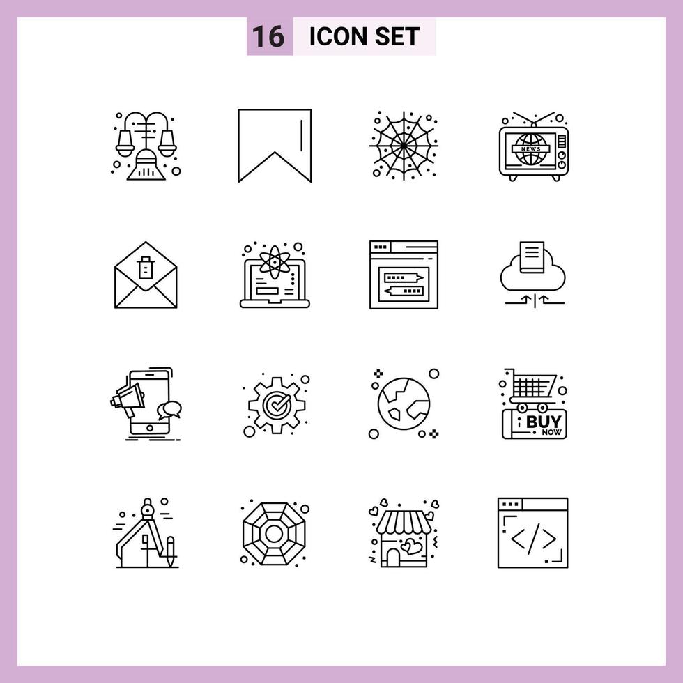 conjunto de pictogramas de 16 contornos simples de elementos de diseño vectorial editables de mensaje de computadora spider web mail tv Vector Gratis